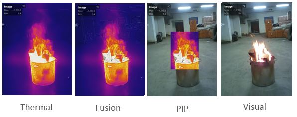 دستگاه دارای چهار حالت حرارتی، تلفیقی ، تصویر در تصویر و نوری است تا بتوانید نمای مورد نظر خود را انتخاب کنید.