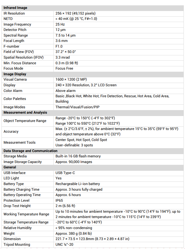 دارای یک آشکارساز VOx با حساسیت بسیار بالا (NETD < 40) بههمراه الگوریتمهای بهینهشده برای بهبود تصویر است تا تصاویر حرارتی شفاف و واضحی را ارائه دهد
